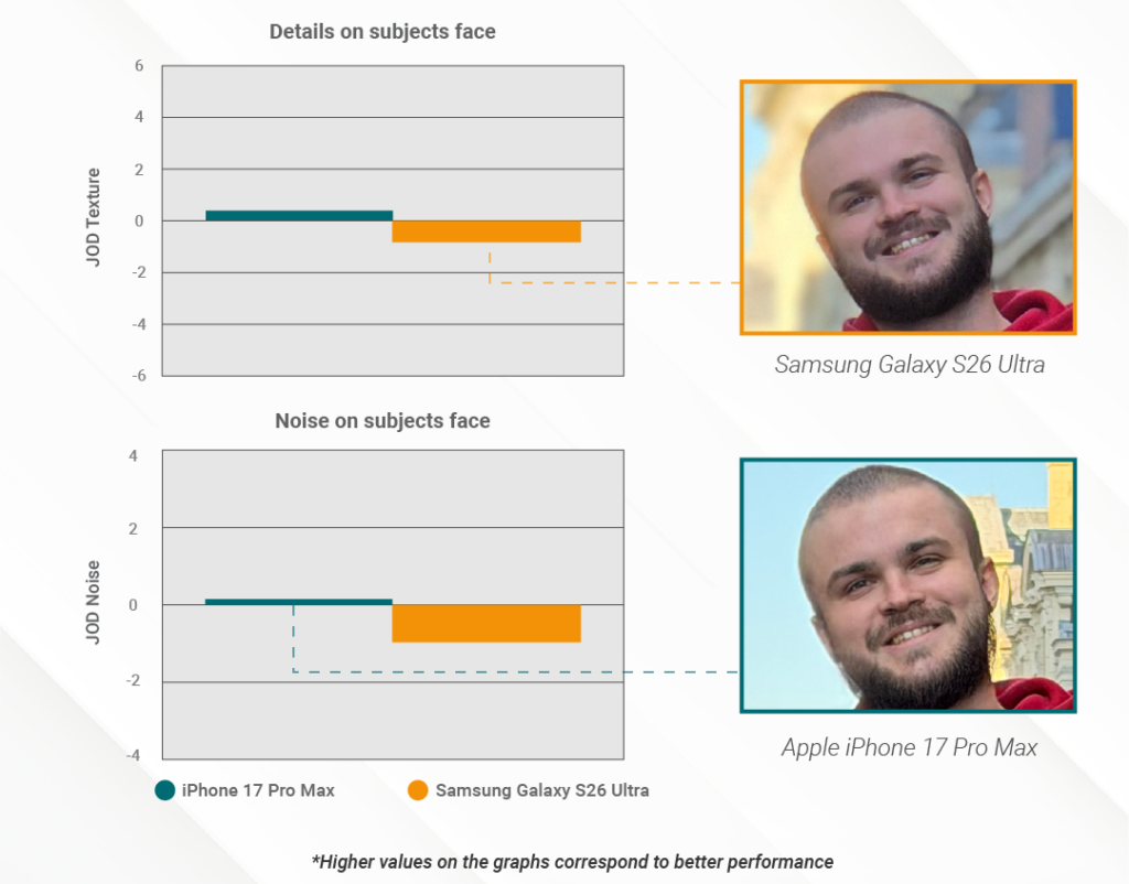 تظهر المقارنات بين الكاميرات أن Galaxy S26 Ultra قد حقق بعض التحسينات مقارنةً بطراز العام الماضي. ومع ذلك، تشير النتائج الأولية من DxOMark إلى أن الهاتف لا يزال يعاني في بعض المجالات الرئيسية مقارنةً بـ iPhone 17 Pro.