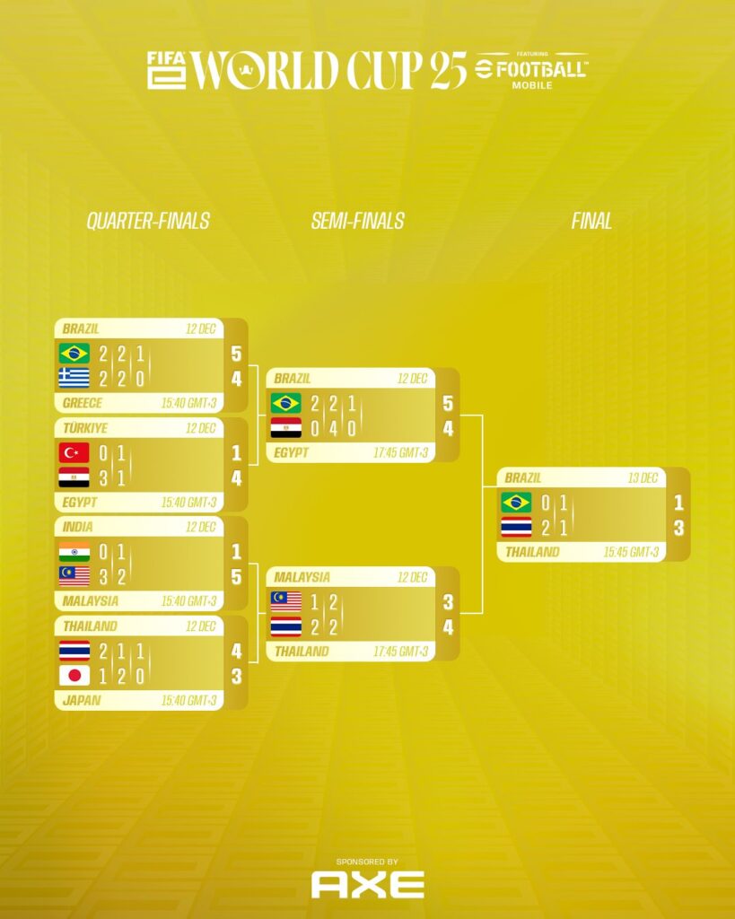 في نهائي فئة الهواتف المحمولة، تقدمت تايلاند في المباراة الأولى بهدف قوي من مسافة متوسطة في الشوط الأول، ثم أضافت هدفاً آخر في الشوط الثاني لتتفوق على البرازيل. وفي المباراة الثانية، أظهرت البرازيل قوتها بتسجيل هدف التقدم، لكن تايلاند سرعان ما عادت للتعادل، لتنتهي المباراة بنتيجة متساوية. وفي نهاية المطاف، خرجت تايلاند منتصرة من هذه المواجهة الحامية لتحصد لقبها الأول. بطل فئة الهواتف المحمولة، اللاعب التايلاندي JXMKT، عبّر عن فرحته قائلاً: “أنا فخور جداً وأود أن أشكر مدربي، فلولاه لما تمكنت من أن أصبح بطلاً، كما أود أن أشكر فريقي وتايلاند على الدعم. لقد تحقق الحلم.”