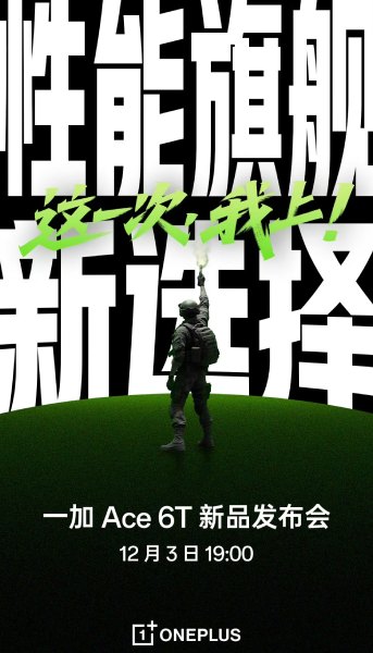 أعلنت شركة OnePlus رسميًا عن موعد إطلاق هاتفها الجديد Ace 6T في الصين، والذي سيُكشف النقاب عنه في الثالث من ديسمبر. يُعتبر هذا الهاتف الثاني في سلسلة Ace بعد OnePlus Ace 6، وهو الأول الذي يأتي مزودًا بمعالج Snapdragon 8 Gen 5 الجديد من شركة كوالكوم.