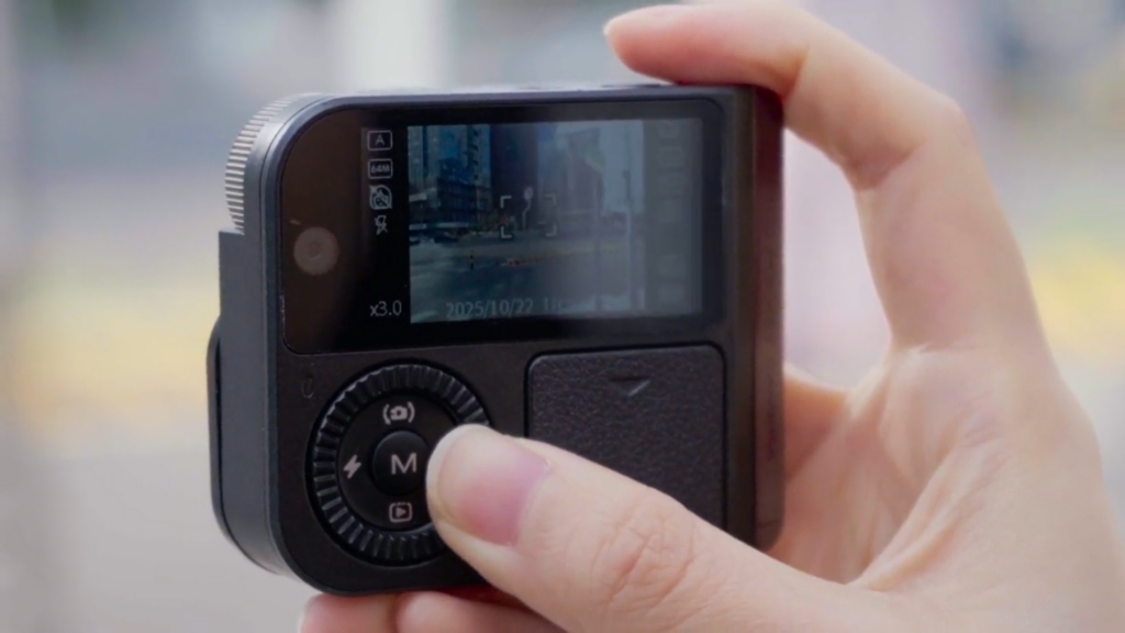 أول ما يلفت انتباهك هو اللوحة المنزلقة المألوفة. بدلاً من زر الطاقة، تنزلق اللوحة الأمامية بالكامل في حركة سلسة، كاشفةً عن العدسة. إنها حيلة ذكية تحافظ على حماية العدسات أثناء وجودها في جيبك، بينما تمنحك لحظة “جاهز للتصوير” القديمة. إنها تلك التفاصيل اللمسية الصغيرة التي لا تستطيع كاميرات الهواتف الذكية تكرارها حقًا.