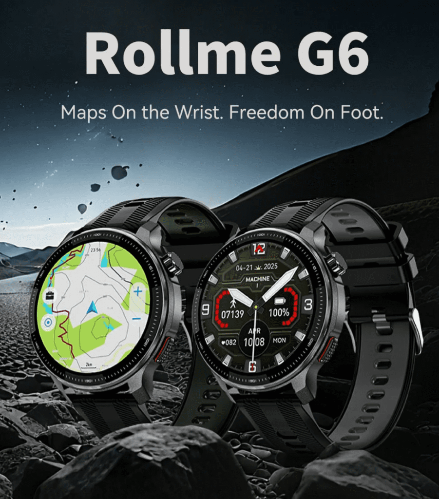 تأتي ساعة Rollme G6 بشاشة AMOLED بحجم 1.43 بوصة وإطار قوي مصمم لتحمل الظروف القاسية. حصلت الساعة على شهادة المعايير العسكرية الأمريكية من حيث المتانة، وتتميز بمقاومة الماء حتى عمق 5ATM. تحتوي الساعة على مستشعرات مثل مقياس الارتفاع، ومقياس الضغط الجوي، والبوصلة، مما يساعد المستخدمين على متابعة الظروف البيئية أثناء الأنشطة الخارجية.