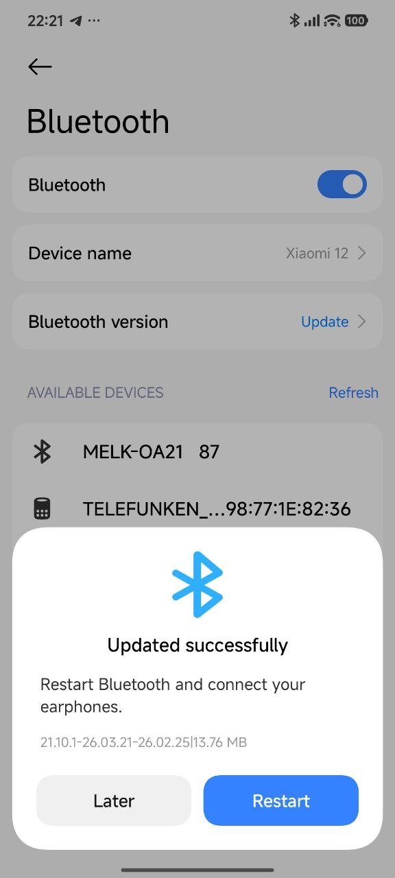يأتي حزمة البلوتوث الجديدة (الإصدار 21.10.1-26.03.21-26.02.25) بحجم صغير جدًا يبلغ 13.76MB. تم تصميم هذا التحديث ليتم تثبيته بسرعة، حيث لا يستغرق أكثر من 30 ثانية ويمكن تنفيذه مباشرة من قائمة الإعدادات دون الحاجة لإعادة تشغيل النظام.