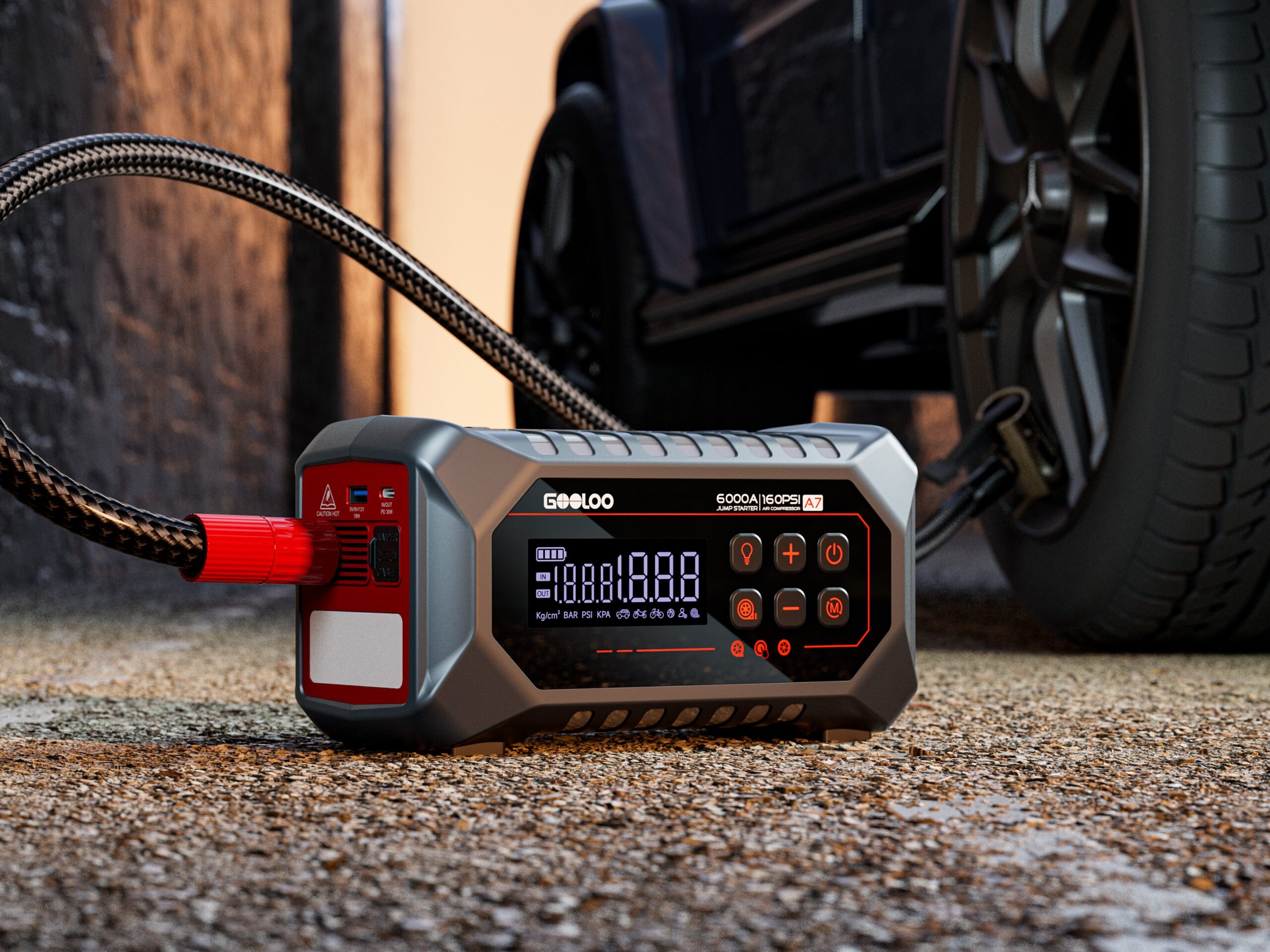 بالإضافة إلى ذلك، يمكن استخدام الجهاز كضاغط هواء، حيث يقدم ضغطًا يصل إلى 160 PSI. يمكنه نفخ إطار سيارة بحجم 195/65R15 من 30 إلى 36 PSI في حوالي دقيقة واحدة. كما يحتوي A7 على خمسة أوضاع نفخ مسبقة، بما في ذلك وضع السيارة والدراجة النارية والدراجة والكرة، مما يتيح للمستخدمين ضبط الضغط حسب احتياجاتهم.