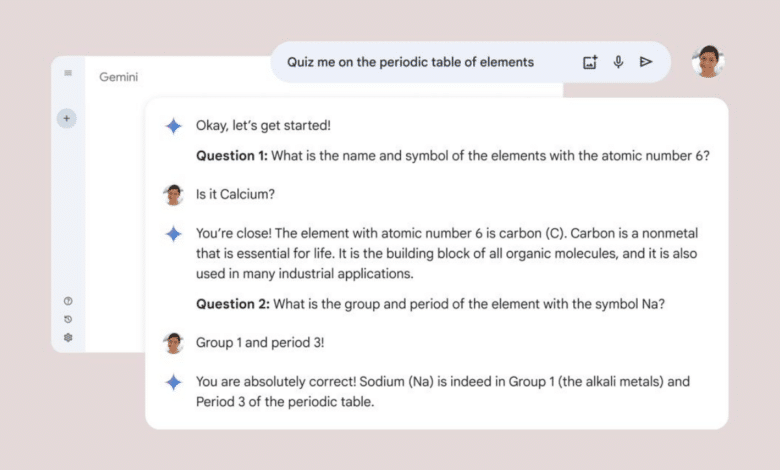 قالت الشركة إن Gemini تحمل مميزات جديدة تركز على مجال التعليم. يستطيع الذكاء الاصطناعي شرح المواضيع خطوة بخطوة، ومساعدة الطلاب في تطبيق المواد التعليمية التي يتعلمونها، كما يمكنه الاستفادة من البيانات من مصادر مثل كتب OpenStax بجامعة رايس.
