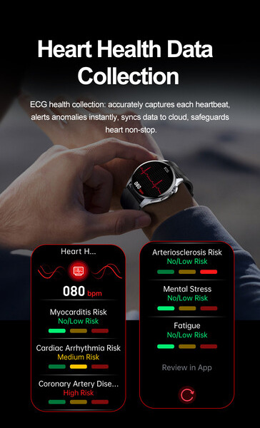 كما تم تحديث تقنية استشعار تخطيط القلب حيث انتقلت Rogbid إلى شريحة AFE4950 من Texas Instruments. وتزعم الشركة أن هذه الشريحة تدعم القياسات الضوئية والكهربائية المتزامنة. تستخدم الساعة زجاجًا موصلًا وأقطابًا جانبية لإكمال دائرة تخطيط القلب، مما يتيح التقاط الإشارات بمستوى مللي ثانية.