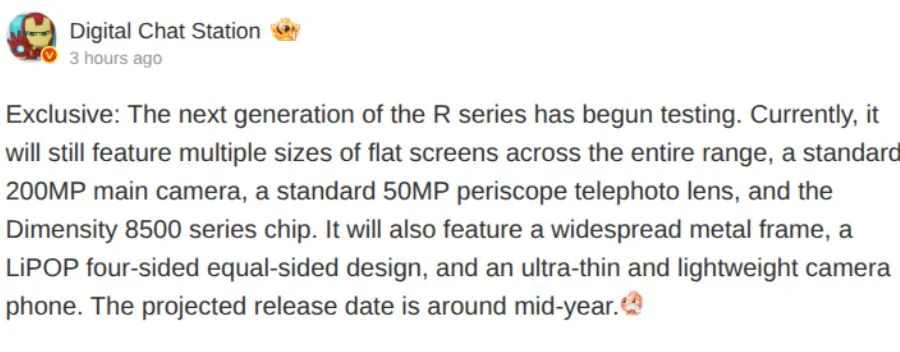وفقًا للمسرب المعروف Digital Chat Station، دخلت سلسلة Oppo Reno 16 الآن مرحلة الاختبار في الصين. وهذا يعني عادةً أن القرارات المتعلقة بالمكونات الداخلية قد تم تثبيتها إلى حد كبير، حتى لو كان المنتج النهائي لا يزال بعيدًا عن العرض العام. إذا استمرت أوبو في اتباع الجدول الزمني المعتاد، فقد يتم إطلاق سلسلة Reno 16 في مايو المقبل.