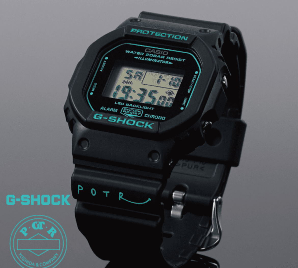 تشتهر شركة كاسيو بتعاوناتها المتنوعة والمميزة، ولكن الشراكة الأخيرة مع علامة الحقائب الفاخرة والمتينة “بورتر” تبدو منطقية للغاية. تجمع ساعة G-Shock x POTR DW-5600 بين قوة علامة كاسيو ولمسات تصميمية أنيقة من “بورتر”. عند النظر إلى الساعة، يمكن ملاحظة أن الإصدار الخاص يتميز بلمسات زرقاء تركوازية تمتد عبر الهيكل والسوار، مما يضفي مظهرًا عصريًا وجذابًا بينما يحتفظ في الوقت نفسه بصلابة G-Shock التقليدية.