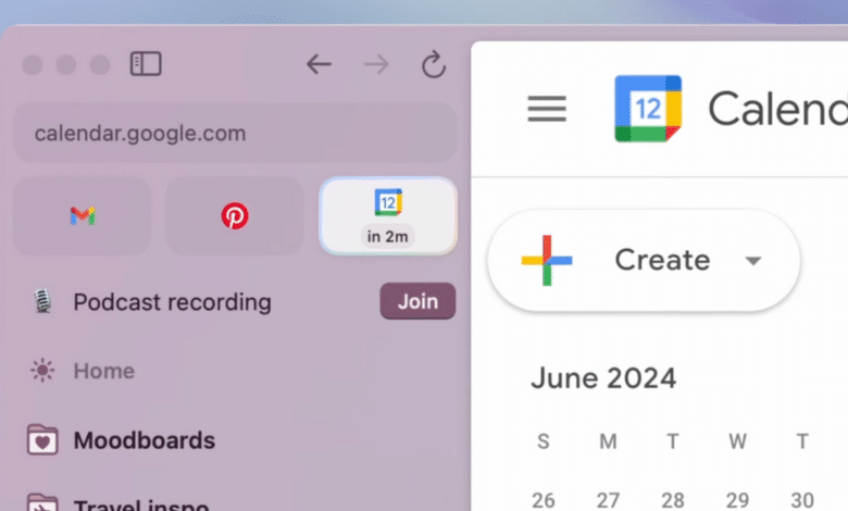 يعرف متصفح Arc تلقائيًا مواعيد اجتماعاتك القادمة ويعطيك إشعار بها، كما يتيح لك الانضمام إليها مباشرةً من داخل النافذة الخاصة بالمتصفح.