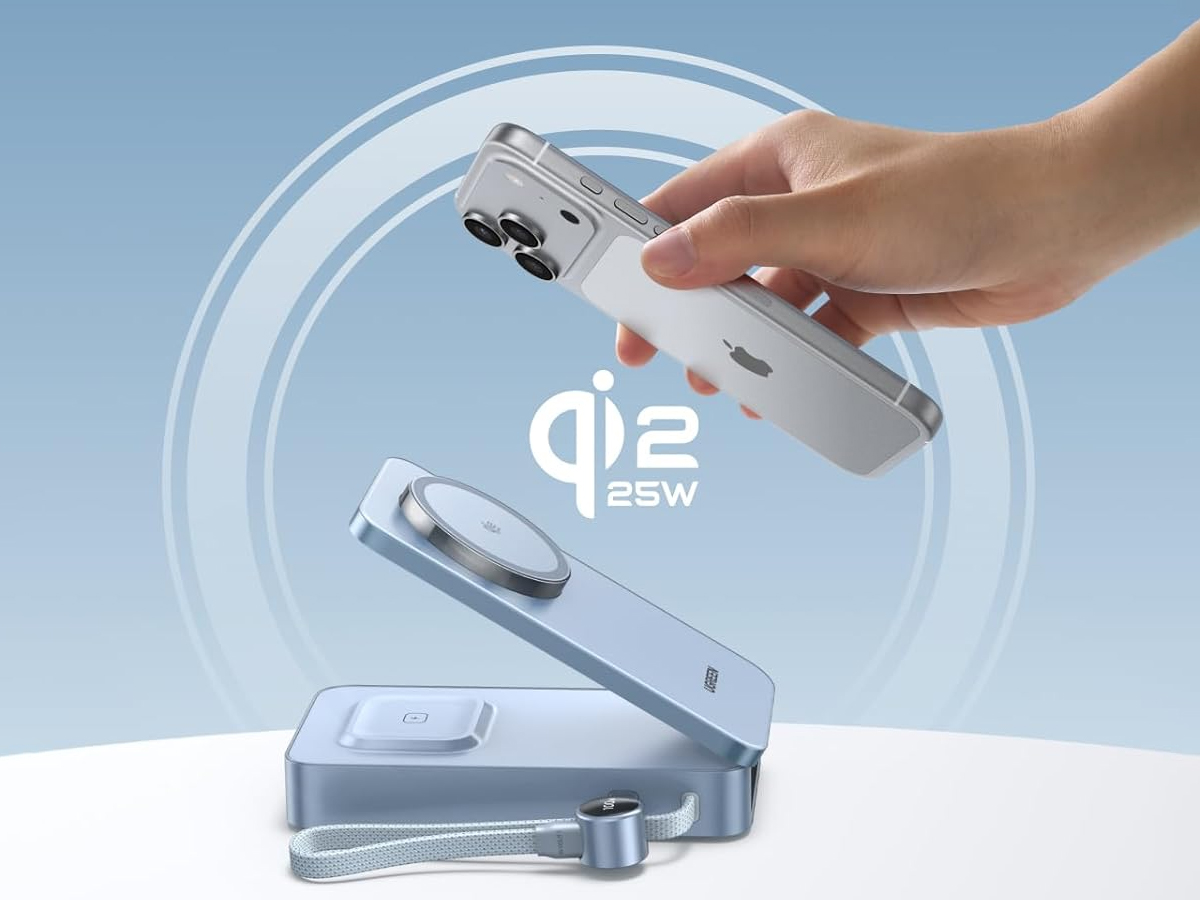 يتميز التصميم القابل للطي بقدرته على الثبات عند زوايا 70° و45°، مما يتيح للمستخدمين استخدامه كحامل أثناء الشحن. كما يحتوي على كابل USB-C مدمج، بالإضافة إلى منفذ USB-A ومنفذ Type-C، مما يوفر خيارات شحن متعددة. في وضع الشحن السلكي، يمكن لبنك الطاقة تحقيق قدرة تصل إلى 100 واط، مما يجعله خيارًا مثاليًا للشحن السريع.
