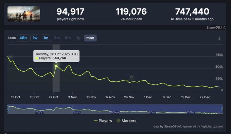 لم يكن أحد يتوقع أن تنتهي فترة الاستمتاع بلعبة Battlefield 6 بهذه السرعة. فقد شهدت اللعبة، التي كانت تُعتبر من بين أكثر الألعاب المنتظرة، تراجعًا حادًا في عدد اللاعبين. في غضون شهرين فقط، فقدت اللعبة نحو 80% من قاعدة لاعبيها، مما يثير تساؤلات عديدة حول أسباب هذا الانخفاض المفاجئ.